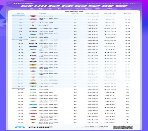 6支英超球队的最终欧冠排名依次为:阿森纳榜首,利物浦第三,热刺第四,切尔西第六,曼城第八,纽卡第十二。