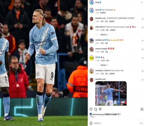 本场比赛哈兰德破门结束球荒,球队也排名第8直接晋级。赛后哈兰德社媒晒出进球后怒吼照,配文写道:“锁定前8名!”